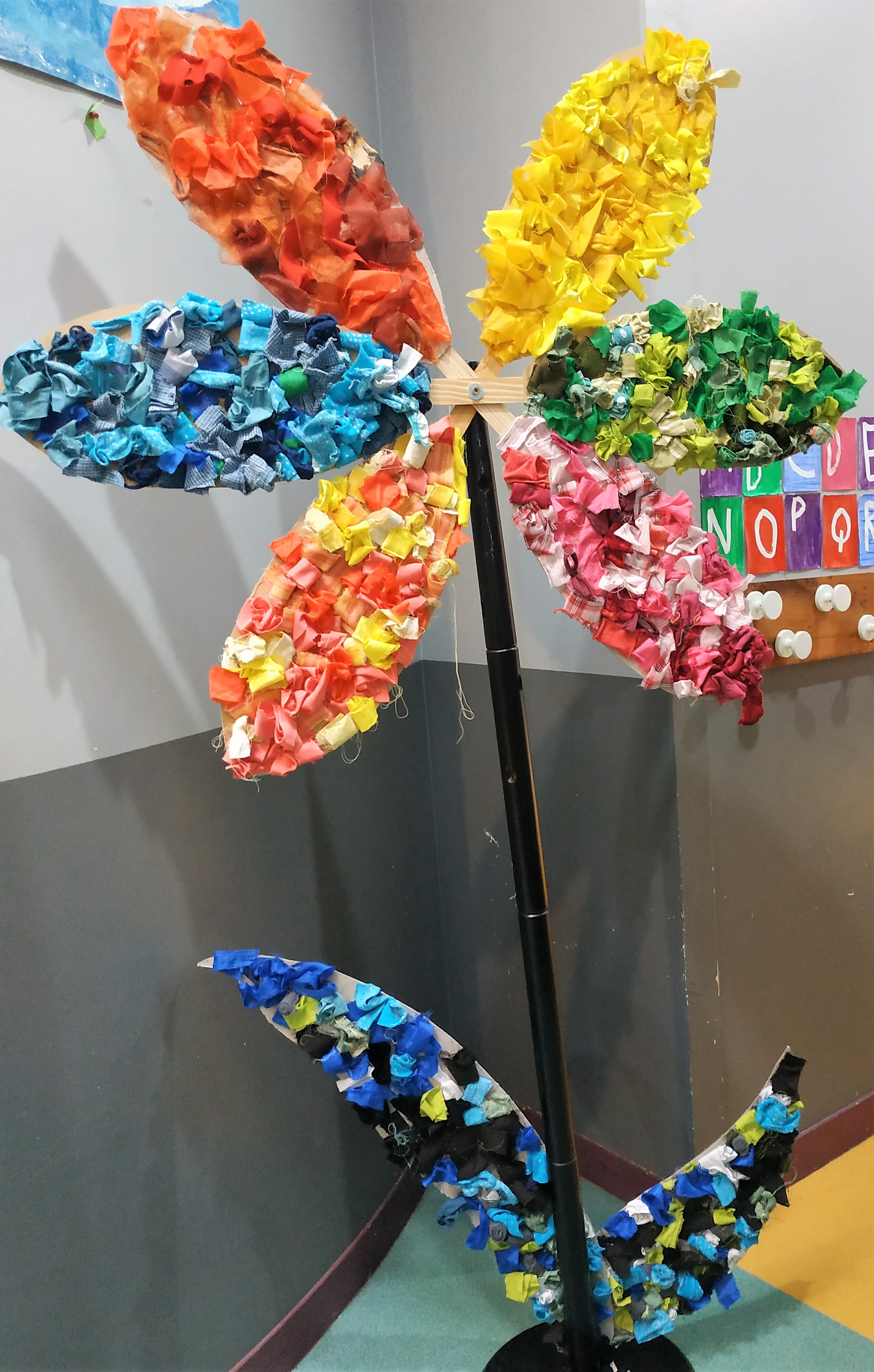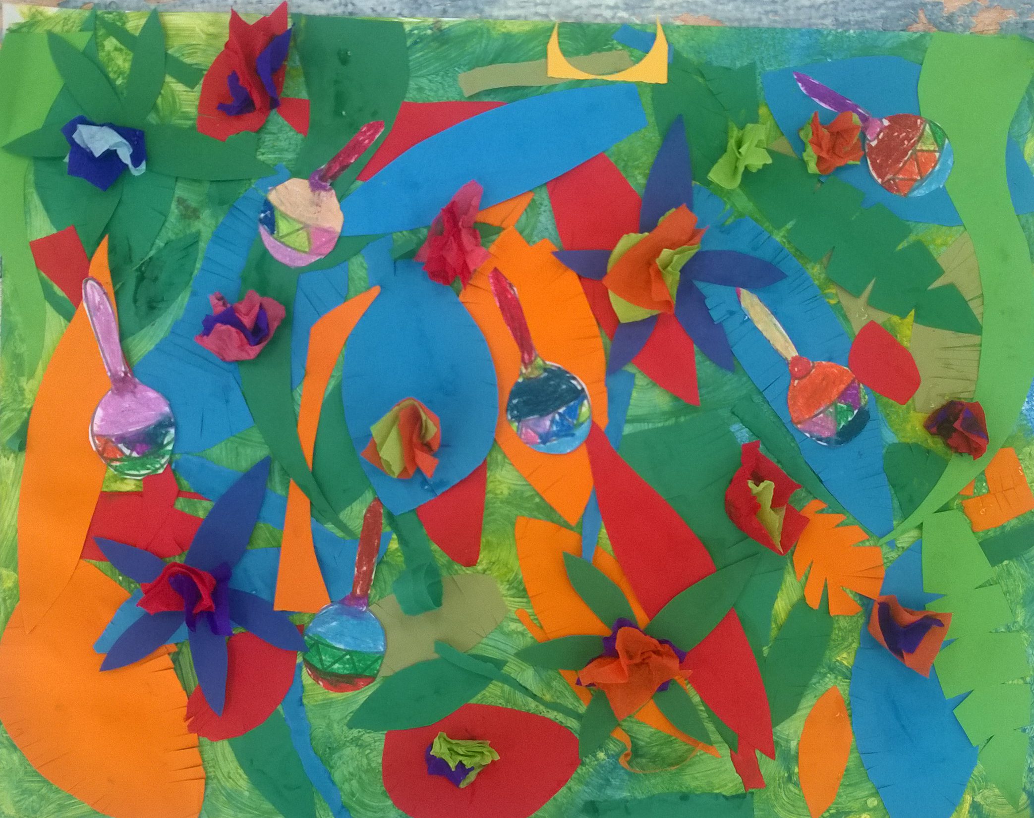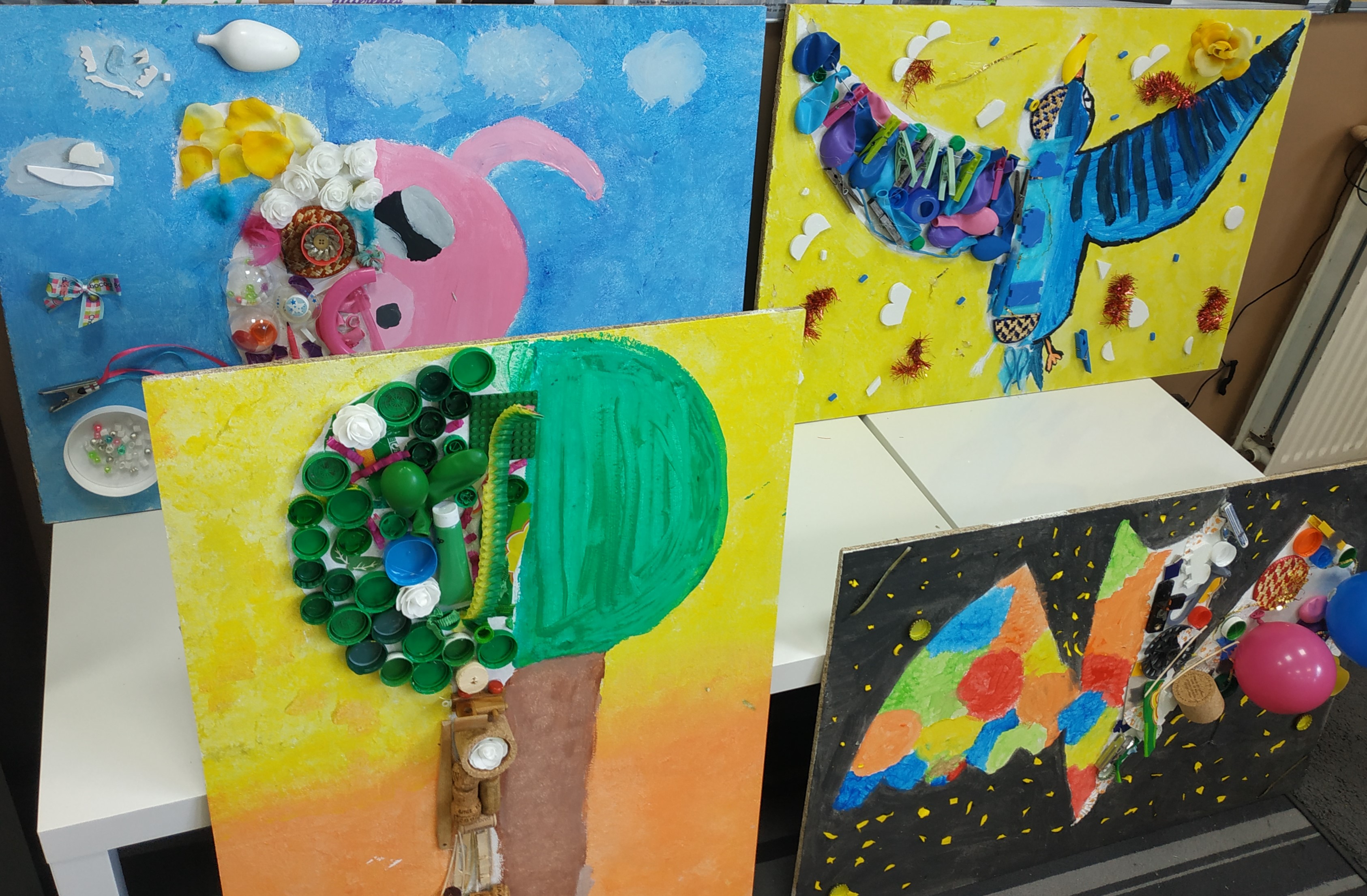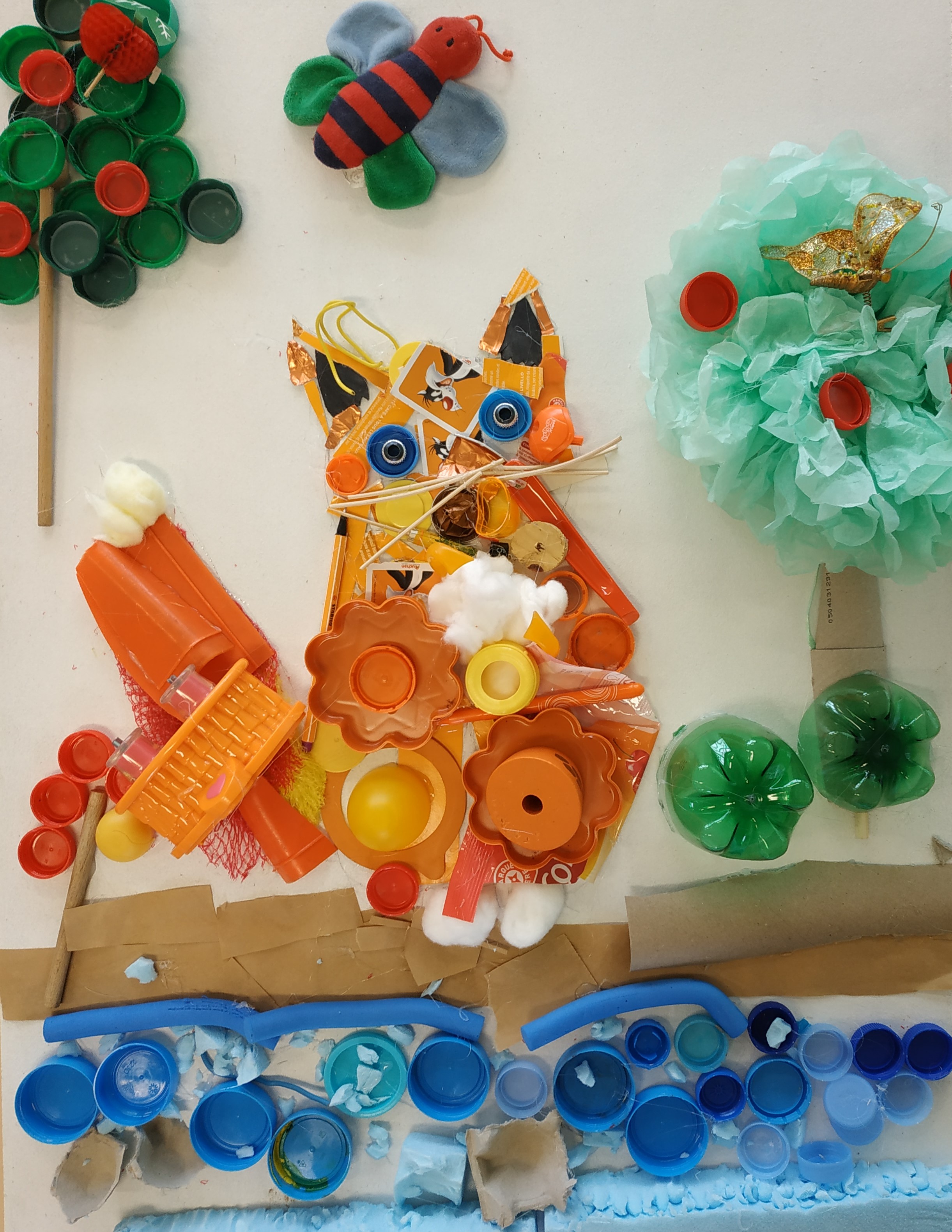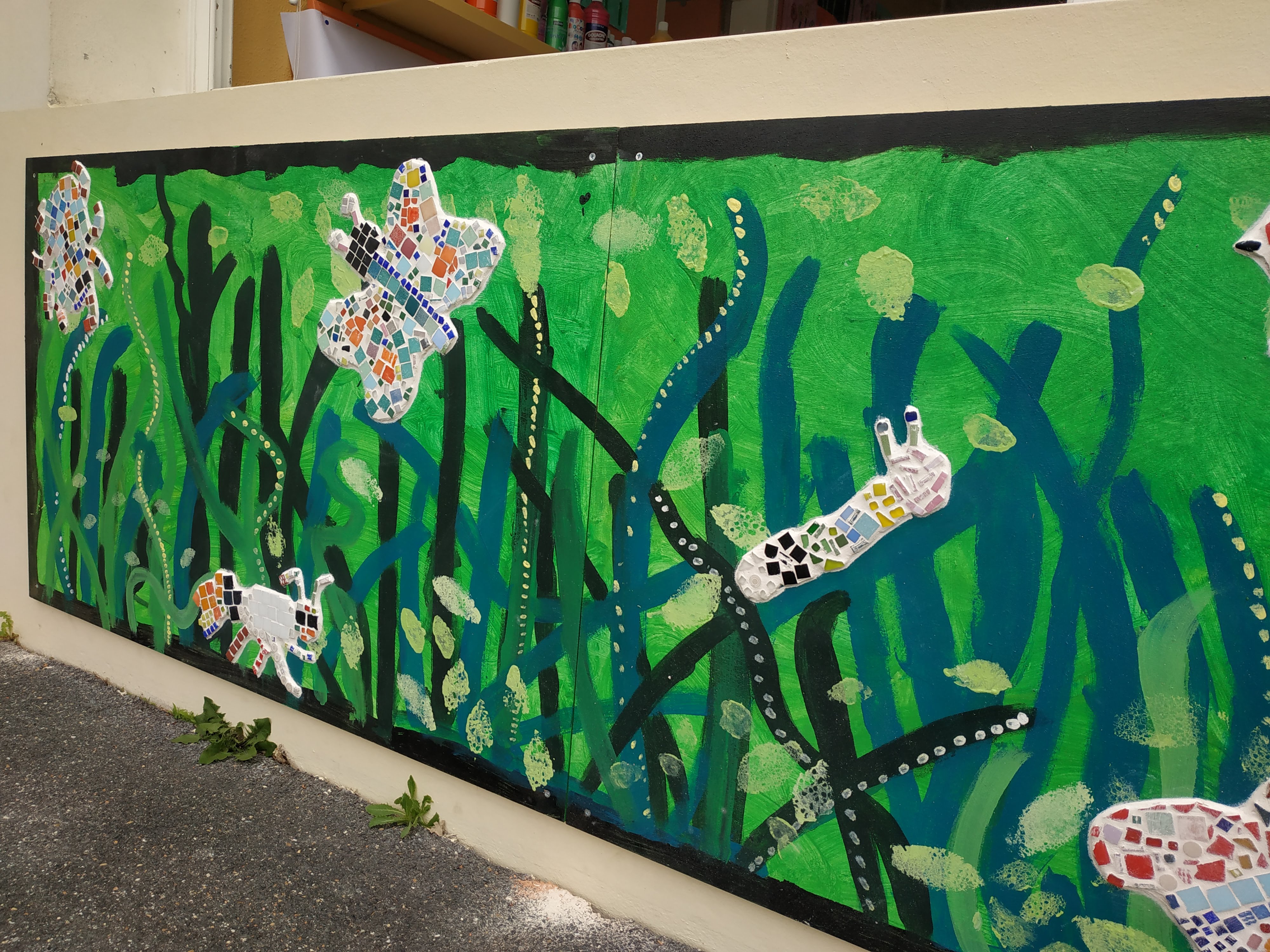 atelier collectif élémentaires – thème : Art, Nature et Recup’ – fresque, partie droite